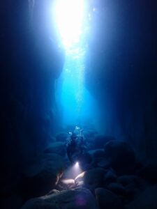 2本目は洞窟ダイビング2つある洞窟の両方に入って幻想的な光景を楽しめました。