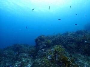 この日は流れがあったため2本めは音海半島周りのポイントへ移動。ディープダイビングの講習で水深25mまで行ってきました。
