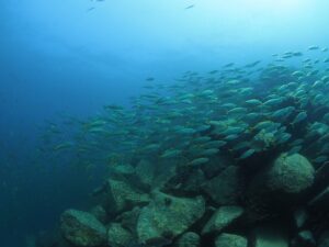 そして敷石エリアでは相変わらずの濃い魚群!小魚を狙うカンパチやマトウダイなども見られて大迫力でした。