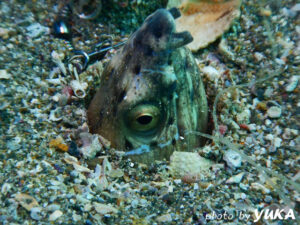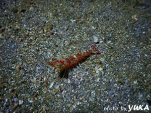 ナイトダイビングがメインなので出発は昼前といつもよりゆっくりめ。お昼過ぎには音海に着いてまずは日中にビーチで下見ダイビングです。ナイトで潜る予定のコースを回りながら生き物探し。まだまだいろんな生き物が見られましたよ。