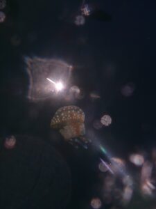 出港前の港のでは水面にかわいいタコクラゲも見られました。
