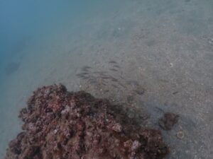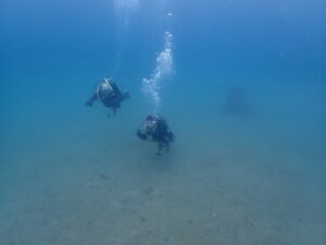 1本目はビーチでのんびりダイブ。イサキの幼魚などが見られました。