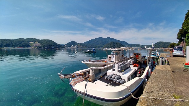 ボートが出る港はダイビングサービスの目の前。ボートポイントは港から5~15分と近いので船酔いが心配な方も安心です。